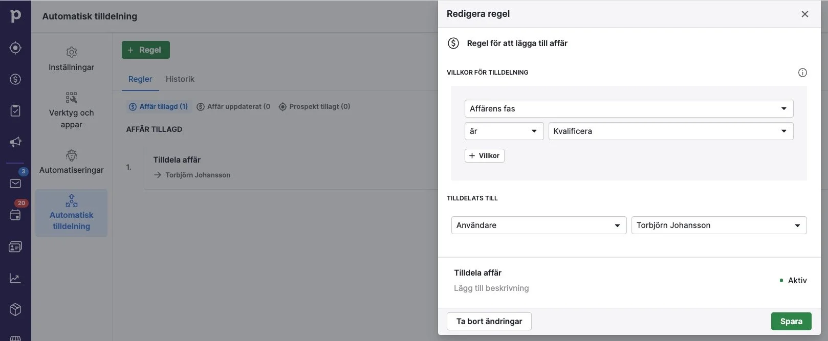 Med Pipedrives nya funktion automatisk tilldelning kan du ställa in regler för att hantera detta automatiskt.
