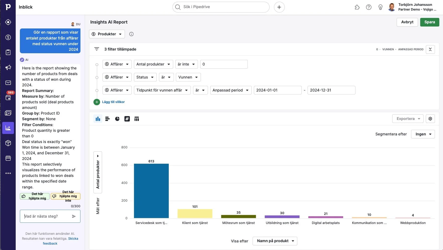 Rapportgenerering med AI i Pipedrive